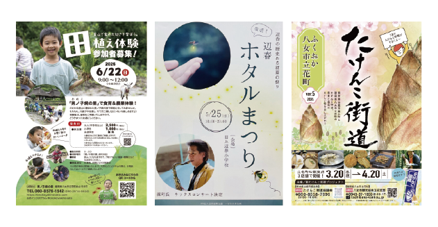 八女市立花町観光課では、田植え体験やホタルまつり、旬の味覚狩りなど、自然とふれあう体験や四季のイベント情報を発信中。旅のヒントにぜひチェックしてみてください。