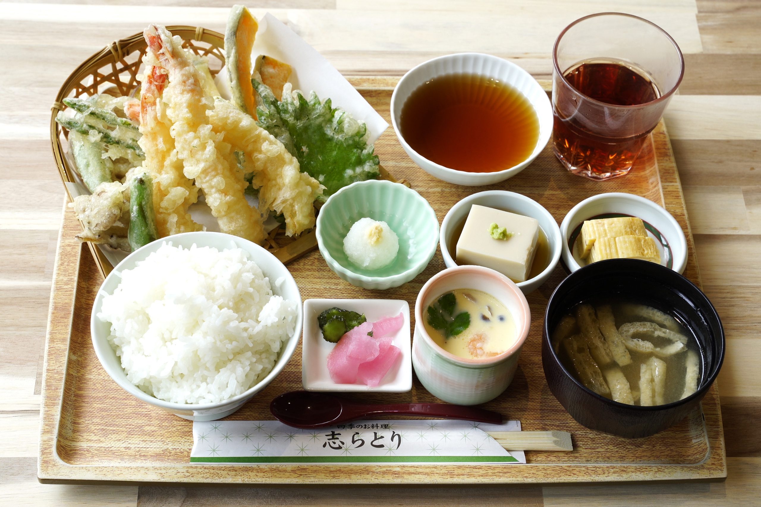 1912年(明治45年)料亭「志らとり」として創業、2017年に「四季のお料理 志らとり」として再開。伝統的な料理を守りつつも、地域の特色を生かした立花の四季の味覚をお届けします。「志らとり膳」や「大海老フライ」など幅広いメニューが揃っており、なかでも手軽に食べられる「だご汁・おにぎりセット」が人気です。